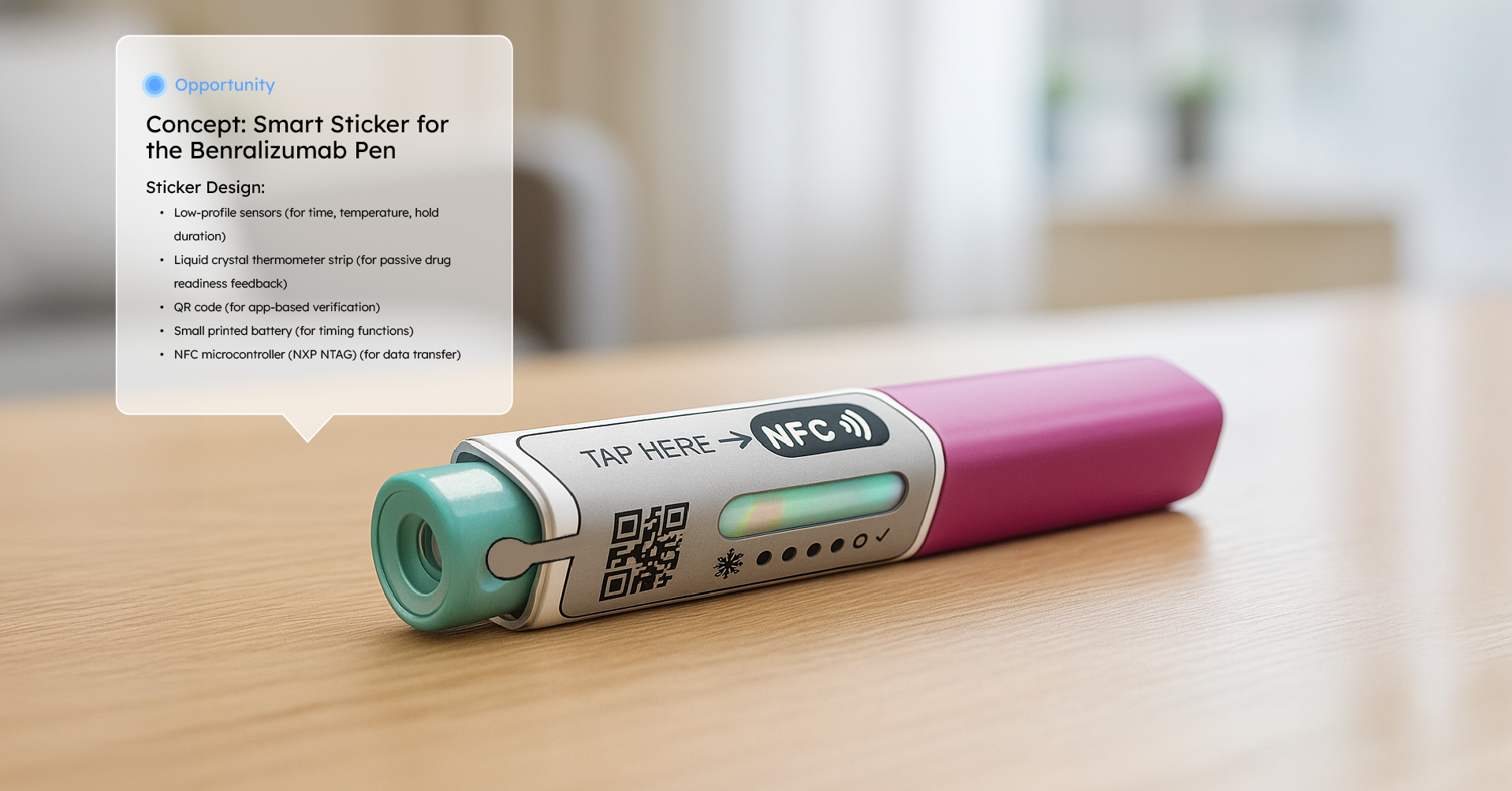 Self-injection pens for chronic respiratory therapies such as benralizumab enable patients to manage treatment outside the clinic. However, patients frequently encounter challenges across preparation, injection, and adherence. Paper-based logs and memory-based routines often fall short, resulting in missed doses, improper drug handling, and heightened anxiety around injections.
