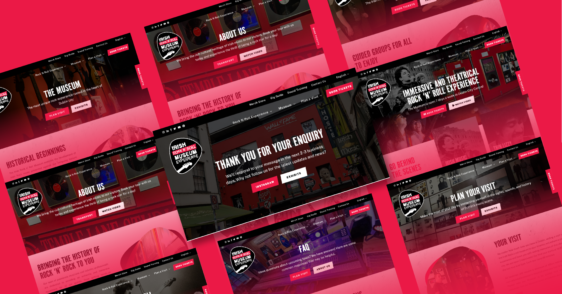 The new website for the Irish Rock n’ Roll Museum Experience will keep the previous logo guidelines and will inherit the red and black tones which the museum is known for. This makes certain that the website feels like an extension of the museum itself; immersive, alternative, and full of character. Rather than a conventional or overly polished corporate aesthetic, the site will embrace a lively and rebellious tone that mirrors the raw authenticity of the Irish music scene. Visitors that come to the website should feel like they’re stepping into a virtual guided tour, with every click echoing the aesthetics of the museum so visitors will know what to expect.